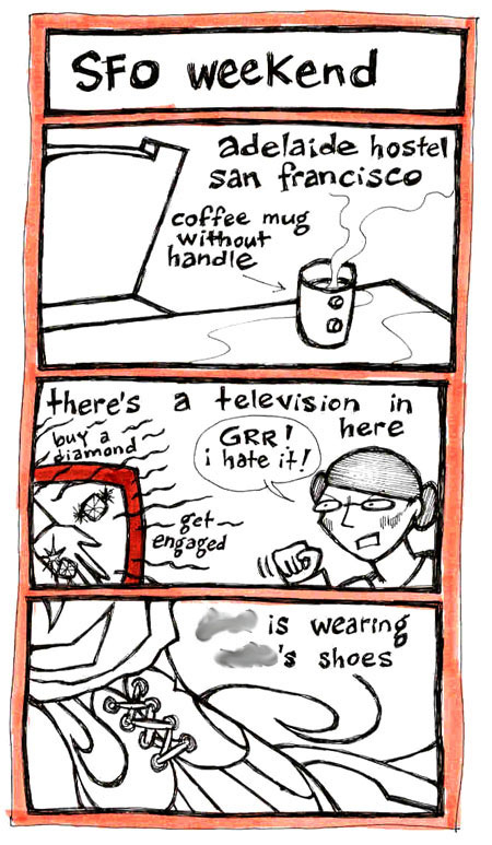 The next pages tell the story of another American trip: this time, to San Francisco. I invited my then-boyfriend to come along.