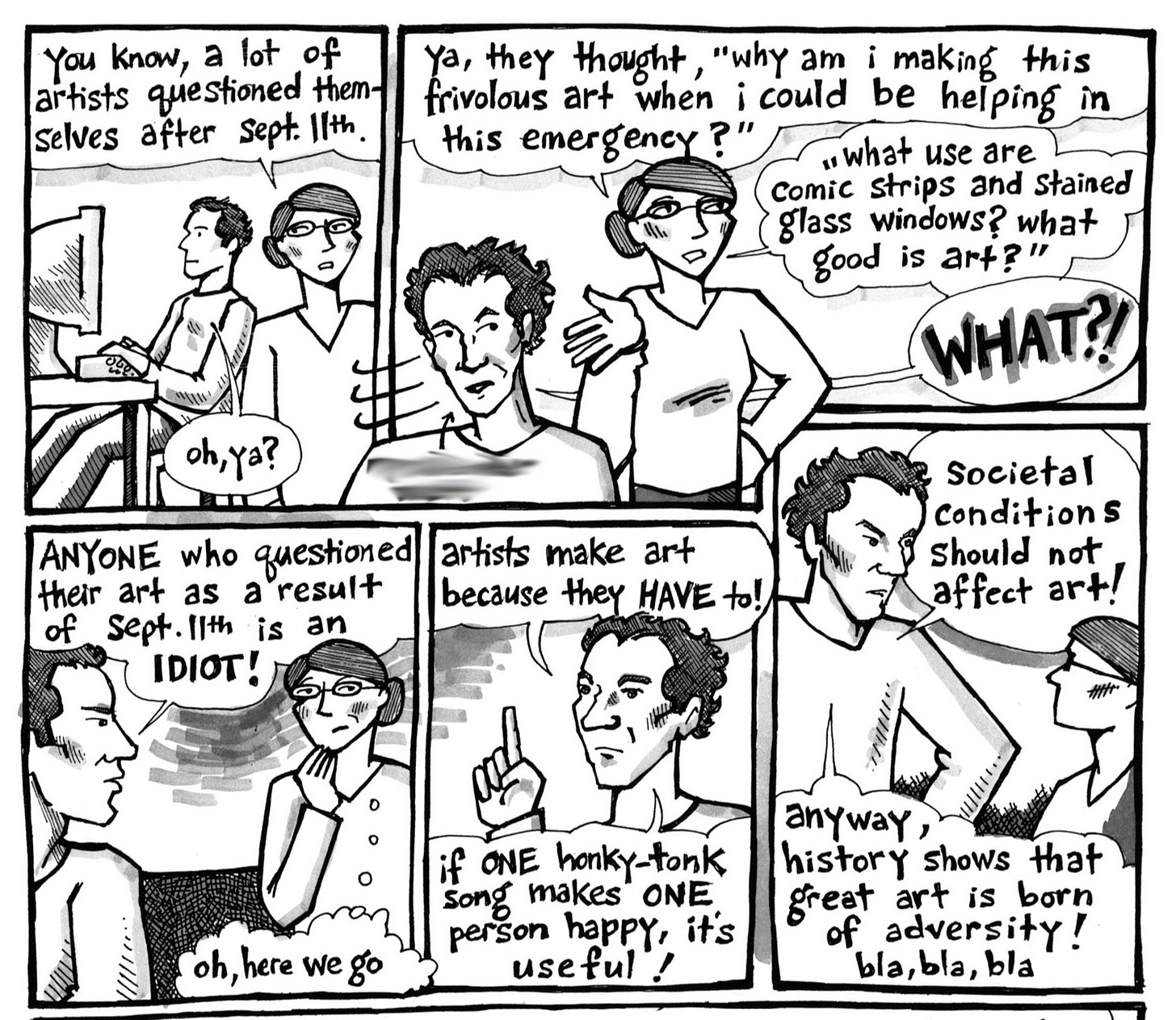 Last week, when I was asking myself that question, I remembered this conversation from comic strip written after September 1, 2001. (I’ll share the whole thing another time.)