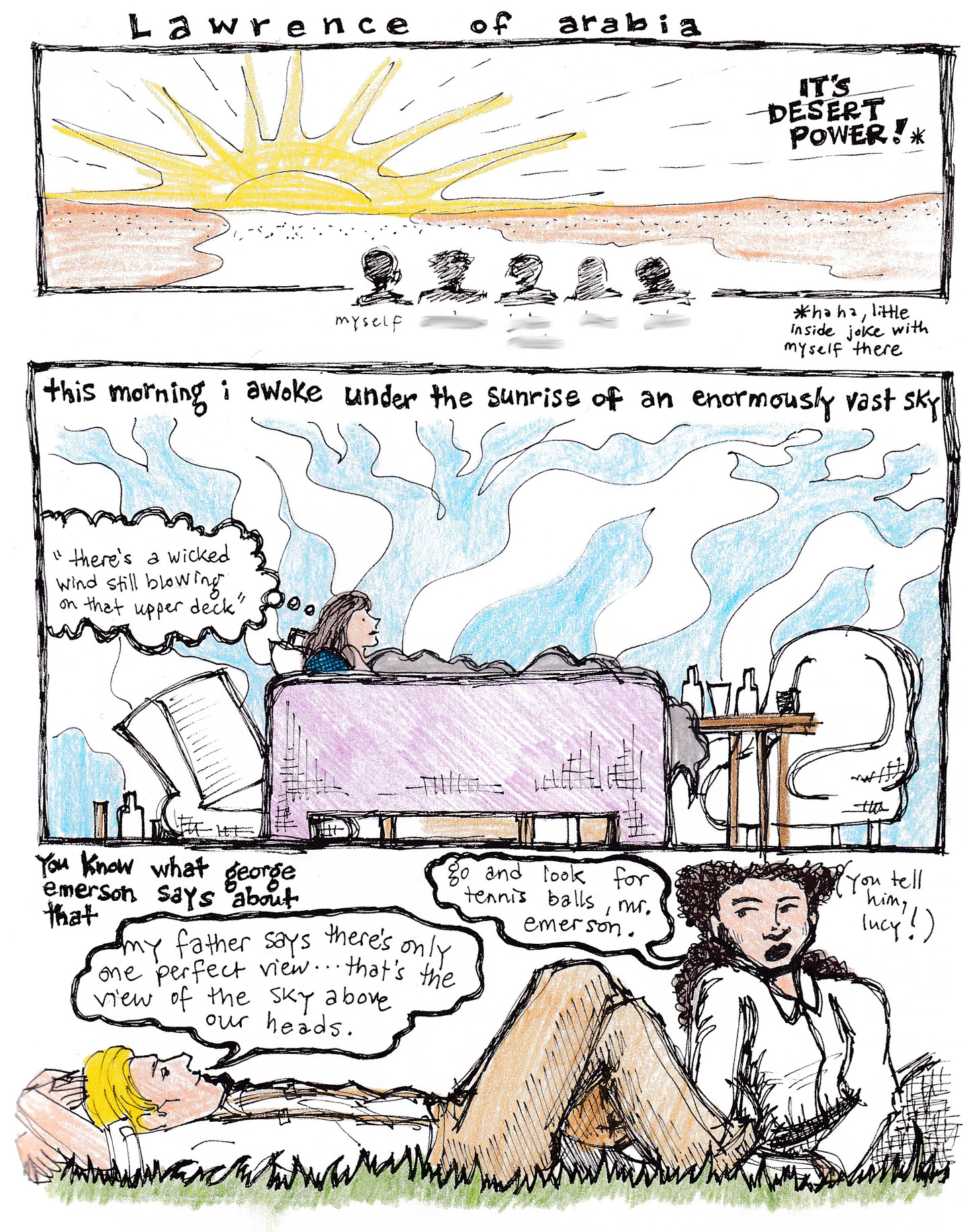 If you’ve been reading the drawing book at all, by now you’ll probably know that the scene at the bottom of that last page comes from A Room with a View. You tell him, Lucy!
