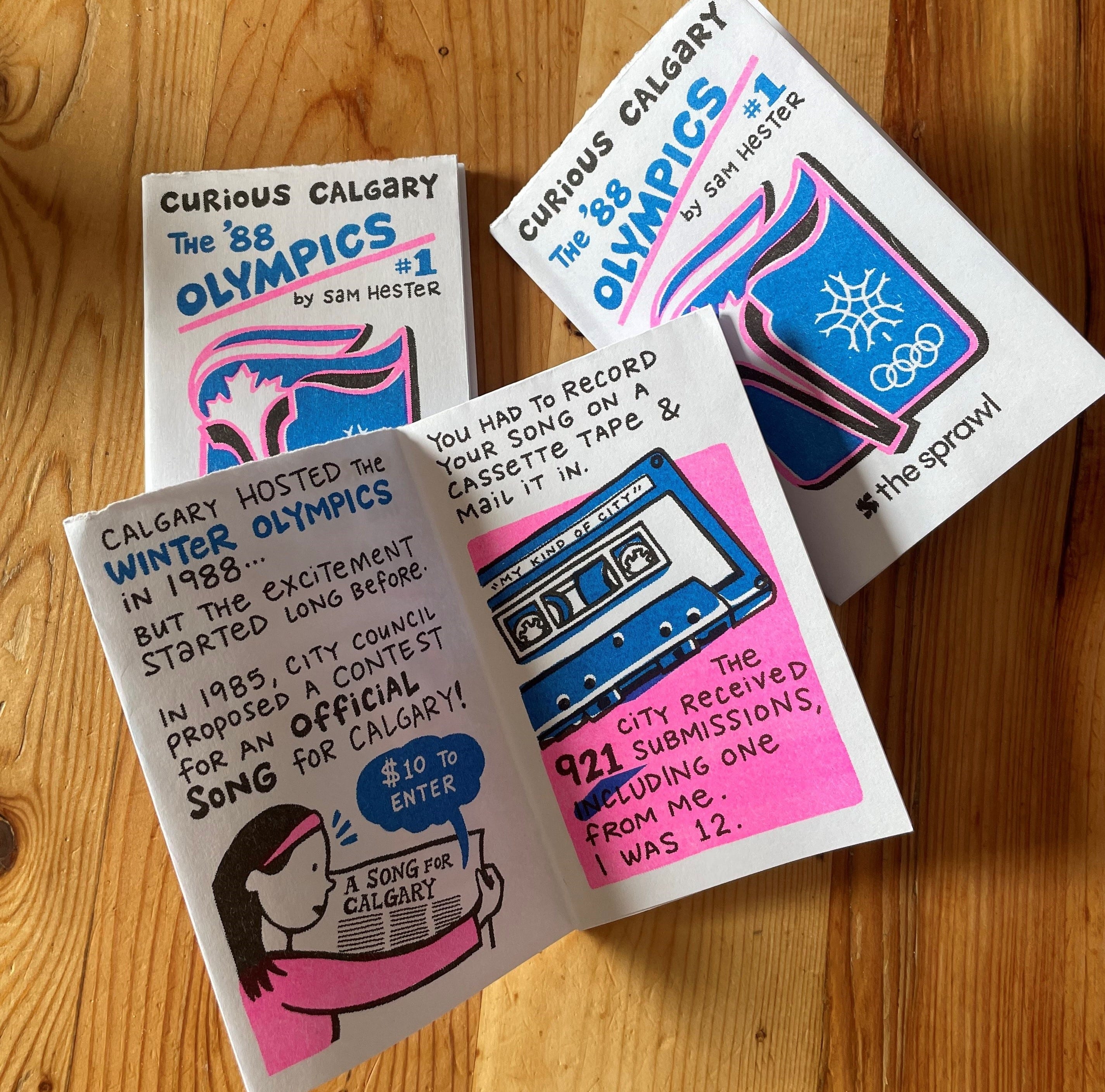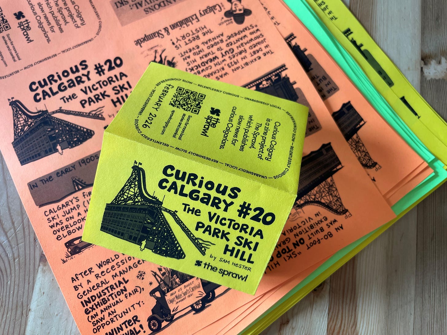 And that’s not all! This week there’s another new Curious Calgary zine published by The Sprawl! This one’s about a 1920s Calgary “ski hill” that was built on the site of today’s Stampede grounds. You can find the comic here on the Sprawl website, along with a deep dive into the story of the crazy ski hill (including lots of historical photos) by Sprawl editor Jeremy Klaszus.