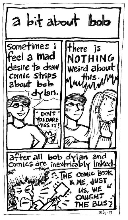 I couldn’t get to the Dylan show, so I ended up just warning my readers that there might be some Bob Dylan comics in the upcoming pages.